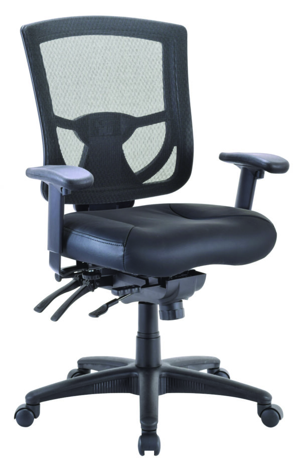 OfficeSource CoolMesh Pro Collection Multi-Function, Mid Back Chair with Leather Upholstered Seat, Adjustable Arms and Black Frame