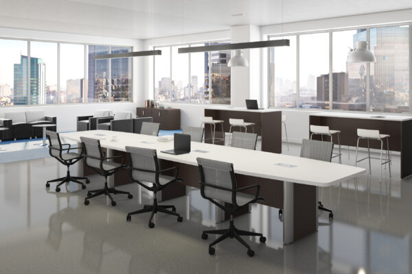 OfficeSource OS Laminate Conference Tables – Expandable Boat Shaped Conference Table with Slab Base