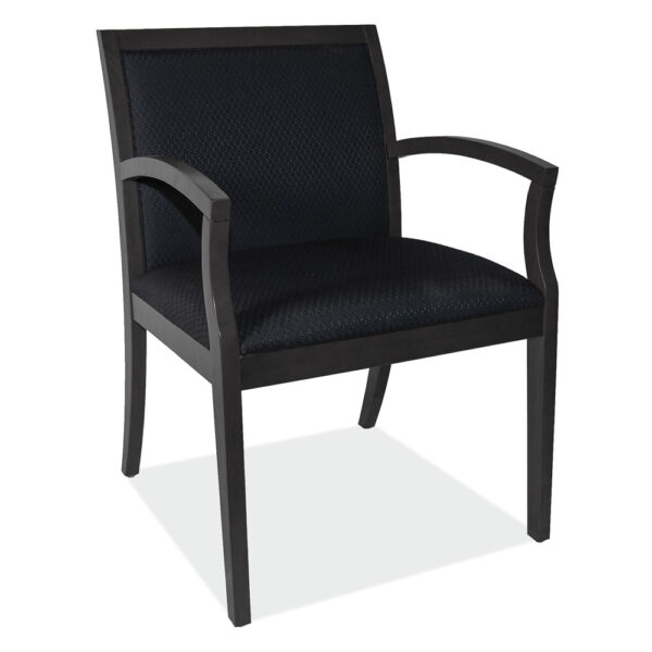 This full back, guest chair with an espresso frame is ideal for reception areas or executive offices. The cushioned seat and back provide ample comfort for yourself or guests, while the design of the chair is also durable and sophisticated. Give your space a presidential feel with this guest chair from our Rex Collection.