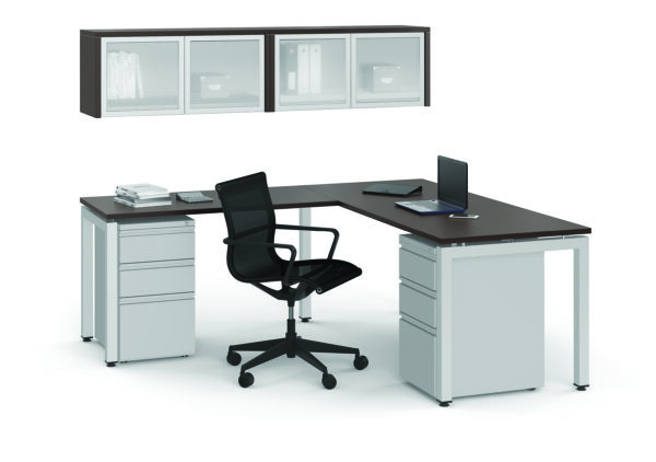 Sometimes the simplest designs are the best choices to meet your business needs. This typical boasts a simple and contemporary design that doesn’t compromise on your need for a sturdy work surface and great storage space. The main desk top is supported by three sets of unite legs that will assure you of a surface that is stable, sturdy, and will keep you working without interruption. The wall mounted hutch and metal pedestal will help to keep your office space free from clutter, while giving you the storage space that you need at work. This typical is offered in eight great finish options, so you can choose the one that meets your needs.The Variant Collection gives you options to spruce up any office space. Featuring many desk accessories, you can create the environment you need to be your most productive self. Give yourself options, when you shop the Variant Collection.